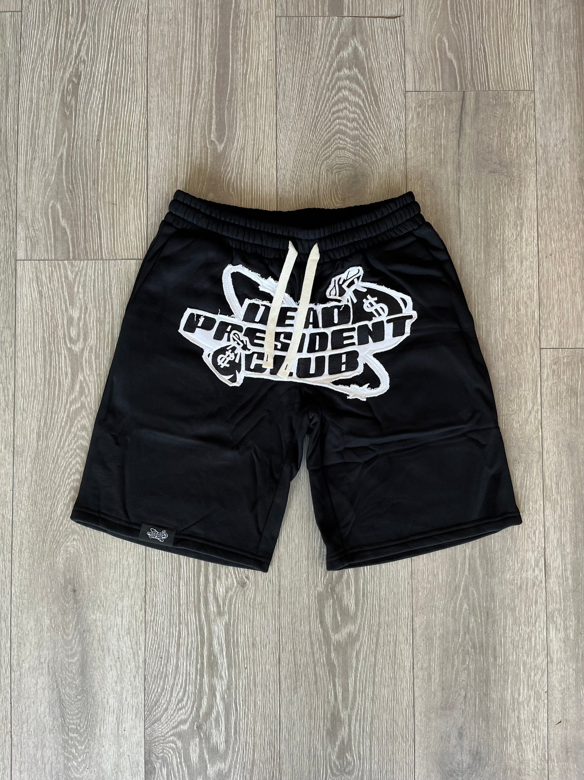 Dead Presidents Club Black & White Distressed Logo Shorts